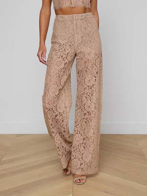 The L'agence Livvy Lace Trouser is a favorite straight-leg style, fitted through the hips and relaxed through the leg, now offered in cappuccino sheer floral lace. Sheer floral lace High rise Lined (interior short) Side and back welt pockets Zip with hook-and-bar closure