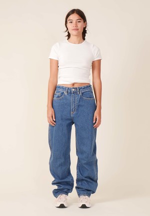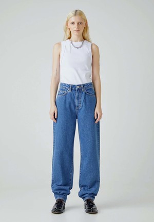 Neuw Denim Sade Baggy - 1983 blue Started by three friends in 2009 from Stockholm and Melbourne. Neuw puts cultural integrity over profit ~ therefore we always have a place for it at GAG. Influenced by Creative Director and Cofounder Pr Lundqvist time lived in Neuwlandstraat, Brussels, the brand fuses sombre Nordic design with a more casual Melbourne aesthetic. Neuw is one of few owner-operated denim brands making waves. Epitomising the attitude of model and singer-songwriter of the time, Sade. Neuw's loosest, baggiest fit to date. The Sade Baggy features a super long leg profile and a super high rise waist for a modern take on 80's styling. Fit: Neuw's loosest, baggiest fit to date. The Sade Baggy features a super long leg profile and a super high rise waist for a modern take on 80's styling. - Rise 31cm / 12 1/4" - Knee 48cm / 19" - Hem 42cm / 16 1/2" Sizing: Regular - shop to size Materials: 100% Cotton - Classic blue - Baggy, high rise, super long jean - Iconic repair ship - Contrast silver trims and hardware - Loose fit - Now thats a staple
