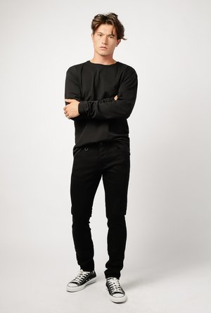 Neuw Denim | Iggy Skinny Jean in Perfecto Named after the Godfather of Punk the Iggy Skinny features a regular waist and a skinny leg. Details include classic five pocket styling, metal hardware, and a button fly. - 93% Cotton, 5% Polyester, 2% Elastane - Machine wash cold - Imported Measurements: Waist: 32" Rise: 10" Inseam: 32" Leg Opening: 12" Measurements from size 32 Model is 6'0" with waist size 32 and shown wearing a size 32