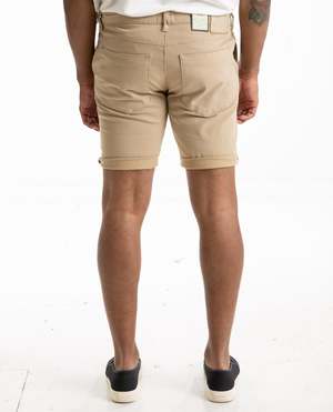 Cody Short in sand by Neuw. Relaxed fit short with a tapered leg profile, rolled hem, and repair stitch & signature fob ring. Model is wearing size: 33 Model is: 5'11", Chest 44", Waist 34" 98% Cotton 2% Elastane Wash Cold Imported