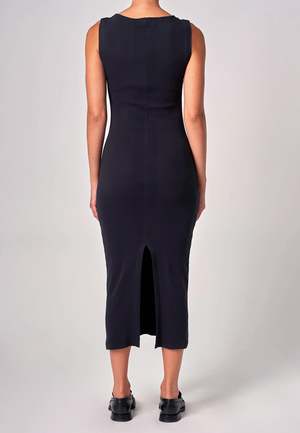 Neuw Denim Frenchie 90's Maxi Dress - Black Started by three friends in 2009 from Stockholm and Melbourne. Neuw puts cultural integrity over profit ~ therefore we always have a place for it at GAG. Influenced by Creative Director and Cofounder Pr Lundqvist time lived in Neuwlandstraat, Brussels, the brand fuses sombre Nordic design with a more casual Melbourne aesthetic. Neuw is one of few owner-operated denim brands making waves. Sizing: Regular - Shop to size Materials: 100% organic cotton - 90s inspired boat neck dress - Back hem split - Fitted silhouette - Chic!