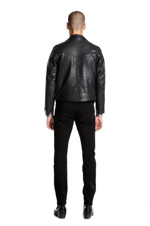 Premium biker style unisex jacket made with dyed and distressed top grade leather metal trims and a red lining. This jacket is a lighter weight leather than the Neuw Berlin jacket and is perfect for a trans seasonal wardrobe. The style is inspired by the jacket worn by Lou Reed during the early days of the Velvet Underground in New York.