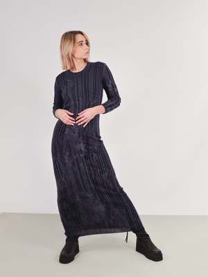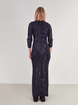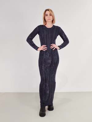 The Slim Fit Dress is the ultimate Autumn/Winter dress to add to your wardrobe. Defined by an imperfect rib knitting throughout, with a round neck, long sleeves, and an ankle length. The body con fit is comfortable, not restrictive, making it the perfect dress to throw on and wear all day. Imperfect rib knitting creates an interesting texture throughout the streamline silhouette. Made in Italy. FIT & SIZING Take your true size for the body con fit, or size up for more room. Size 40 Bust: 31" Waist: 27" Length: 62" Sleeve length: 18" Bicep: 8" Size 44 Bust: 34" Waist: 30" Length: 64" Sleeve length: 20" Bicep: 8" Size 46 Bust: 37" Waist: 33" Length: 65" Sleeve length: 22" Bicep: 8" DETAILS Fabric | 100% Extra Fine Virgin Wool Color | BLUE Designer | SERIENUMERICA CARE All clothing should be handled as carefully as possible to increase longevity, so we have created an Idlewild Care Guide, featuring products, instructions, videos, and tips from The Laundress. Pre-treat with the garment with Stain Solution. Turn the garment inside out. Hand wash or place garment in a garment bag and machine wash on delicate/woolen mode in cold with Wool and Cashmere Shampoo. Do not bleach. Do not tumble dry. Dry flat in the shade. Lightly steam to refresh the garment if necessary. Brush with a Sweater Stone if necessary.