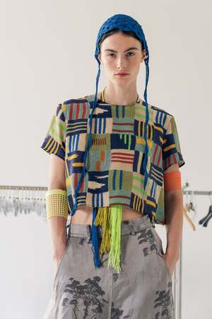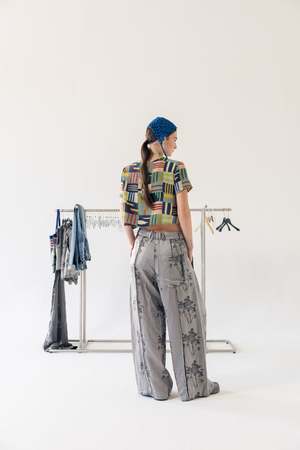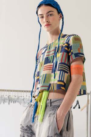 Cropped printed T-shirt. 98% Cotton 2% Polyamide. Made in Italy.