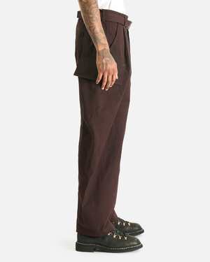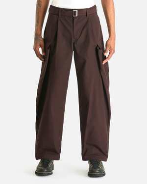 These pants are crafted from ripstop material and feature a zip fly and button closure, a matching belt with a logo2-engraved metal buckle, 4-pocket styling, and integrated cargo pockets at the sides. Features: - Belt loops - Matching belt with metal buckle - Zip fly and button closure - 4-pocket styling - Integrated cargo pockets with snap button closure - Contrast stitching Composition: 53% cotton, 47% nylon Model is 6'2" with a 30" waist and wears size 2. Made in Japan.