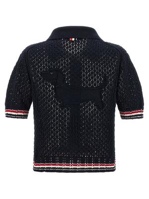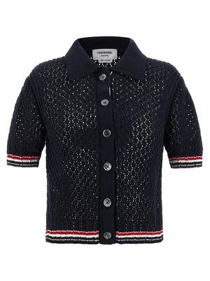 Women > Clothing > Topwear > Polo Shirts Polo shirt in openwork "Hector pointelle" cotton knit with shirt collar, front button closure, and "RWB" grosgrain, featuring short sleeves with "RWB" intarsia on the edges. Composition: 100% cotton.