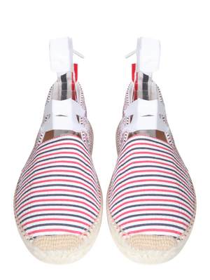 Jute sole with rubber bottom. Mix fabric.