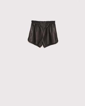 Leather shorts - Black. Drawstring at the waist Elasticated waistband Italian pockets Liquette-style bottom Unlined Supple and lightweight leather Composition: 100% lamb leather.