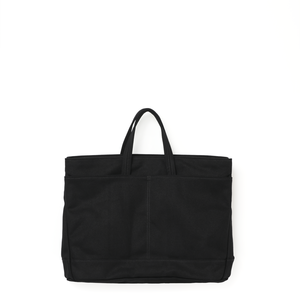 One large compartment with single interior pocket and two exterior pockets. Double rolled handles with center stitch for comfort. Single shoulder strap, hidden attachment points. Snap closure. Heavy Cotton Duck with Webbings. Featured in New Bags.