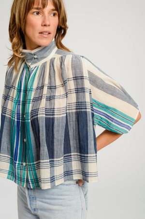 The checked Sakai blouse plays on its fluid, effortless cut, evoking a natural, summery vibe. A piece you can easily slip on for any occasion! 100% cotton.