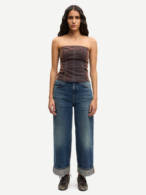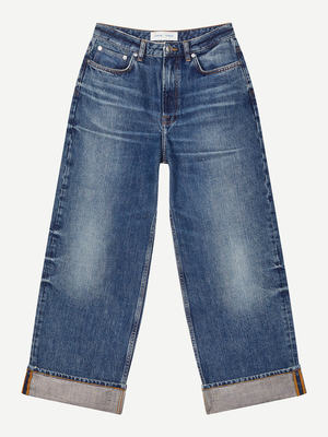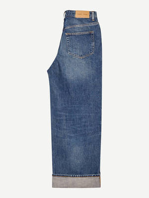 Meet the Sashelly Cuff Jeans by Samse Samse. Featuring a low waist, loose fit and wide leg design, these jeans have wide cuffs creating a cropped length. The front features a button and zipper closure, while the classic five-pocket style provides ample storage. Made with 100% organic cotton, these jeans offer sustainability without sacrificing style. The model is 175 cm and is wearing size 27/32. Details - Low waist jeans - Loose fit with wide leg - Wide cuff - Cropped length - Front zip fly and button closure - Five-pocket style - Stone wash Fabric and care Composition: 100% organic cotton. Pocket lining: 100% cotton. Care: 30C machine wash. Do not tumble dry. Do not bleach. Iron at low temperature. PCE only.