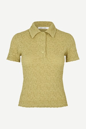 The Sadaisy Polo from Samse Samse is a fitted, short-sleeved textured jersey polo top with a slim fit. It styles easily with your favorite denim or skirt for spring. - Buttoned half placket closure at the front - Polo collar - Main material made from an elastic organic cotton blend - The model is 175 cm and is wearing size S