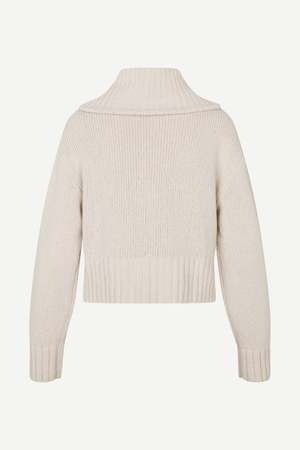 Cardigan sweater with a zip closure at the front. Main material is made from a blend of organic cotton and recycled polyamide. Fit: True to size, take your usual size. Composition: 65% organic cotton, 35% recycled polyamide. Care: Machine wash in cold water, lay flat or hang to dry. Made in China.
