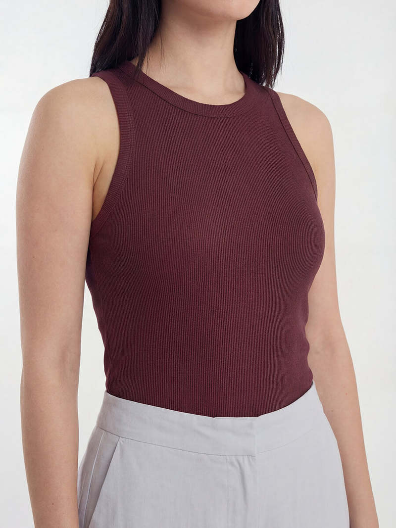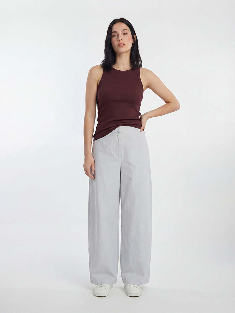 The Alexo Tank from Samse Samse is a wardrobe staple, made with a soft, fine ribbed organic cotton. Cut in a sleeveless, slim fit shape with a crew neck, this style is feminine and perfect to layer with jeans and a cardigan for a relaxed look. Made of 95% certified organic cotton which has a lower environmental impact than conventional cotton, as it reduces water usage, greenhouse gas emissions, and the amount of chemicals used. Size S: Bust 65 cm, Length 62.5 cm, Hem 72 cm. Details - Sleeveless - Crew neckline - Soft jersey fabric - Slim fit - Ribbed organic cotton - GOTS certified Fabric & Care Composition: 95% Organic Cotton, 5% Elastane Care: 30C machine wash.