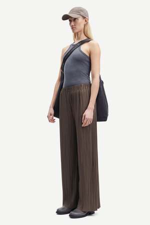 Relaxed fitting wide-leg trousers with an elasticated waistband and side seam pockets. Made from finely pleated jersey fabric in a recycled polyester blend (GRS certified). 93% Recycled Polyester, 7% Elastane. Sustainably made.