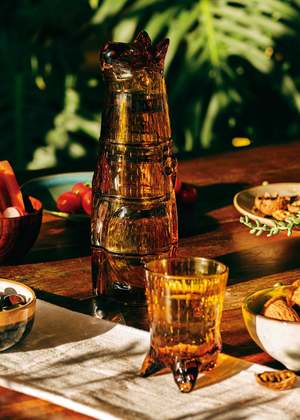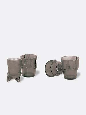 Stackable glasses that form a cata usable decor piece that is both beautiful and space-saving. This glassware set is sold as a set of 4. Size: Stacked: 11.4" H x 2.75" W x 3.15" L Each Single Glass: Approx. 3.9" x 3" x 2" Holds 9.1 oz Material: Glass Dishwasher safe; hand wash recommended.
