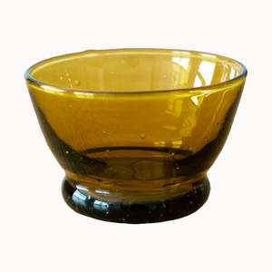 This versatile Moroccan blown glass footed pinch bowl is just the right size for everyday use. Perfect for ingredient prep, serving small bites, plate-side dipping, or keeping jewelry safe, it makes a beautiful addition to a charcuterie board. Size: approximately 3 in diameter x 2 in tall Material: Handblown glass Care: Hand wash recommended to increase the product's longevity. Due to the handcrafted nature of the piece, slight variations in size, color, and texture are to be expected, as are small imperfections that may occur during the crafting process. This authenticity adds character to each bowl. Handcrafted by an artisan team in Marrakesh, Morocco.