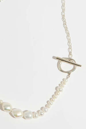 The collage-like MARE necklace combines a beautifully irregular strand of pearls with a thick cable rolo chain. - Sterling silver and pearls - Measures approximately 18" in length