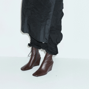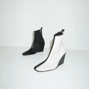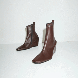 Wedge ankle boots with a diagonal square toeperfect for the fashionista. The narrow silhouette effortlessly molds to your foot. Soft napa leather and a leather sole and insole complete the look. Heel Height: 8 cm Leather sole and insole.