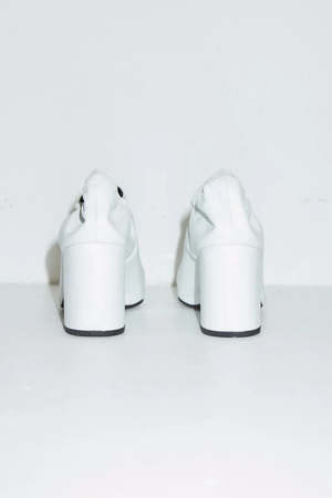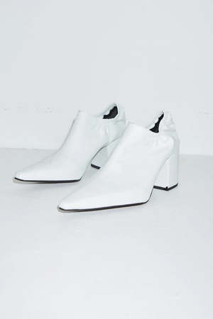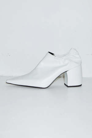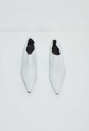 New take on the stiletto, with elasticated cleaveage and a strong sharp squared point. Made in really soft glove feeling leather. - Heel Height 7.5 cm - Leather sole, insole and lining. - Color: White Age group adult