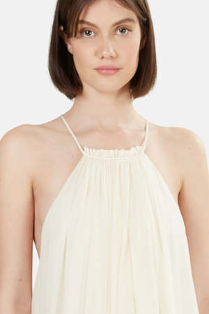 - Color: Antique White - Silk chiffon fabric - Mini length - Halter neck - Draped silhouette - Flower detail at back - 100% Silk - Imported - Style #: S307-4585 HSC - Dry clean only * Model is 5'9 wearing a size 4 Productcode LIM-17 Designer 3.1 PHILLIP LIM
