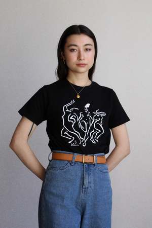 3 Step Tee Super soft and stretchy 100% cotton Unisex Sizes S-XL MEASUREMENTS Size Small Chest: 18" Shoulders: 16.5" Length: 27.5" Size Medium Chest: 21" Shoulders: 17.5" Length: 28.5" Size Large Chest: 23" Shoulders: 21" Length: 29.5" Size X-Large Chest: 24.5" Shoulders: 23" Length: 31.5" Graphic design by Yahaira Malkenhorst and screen printed locally.