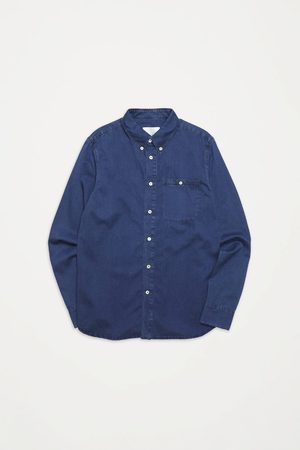 Classic button-down collar shirt with a placket front with real mother of pearl buttons, a tailed bottom and adjustable cuffs. Features a U-shaped pocket with an inside ribbon detail. Has been washed for a very soft finish. Colour: washed denim Material: 100% cotton Fabric: German Handmade in Germany
