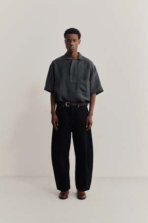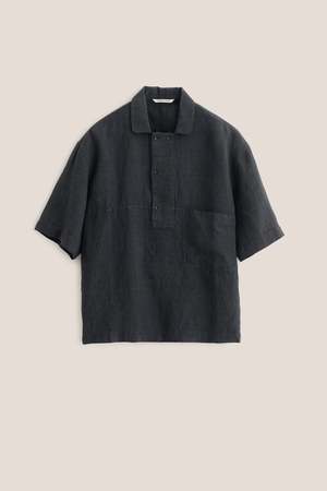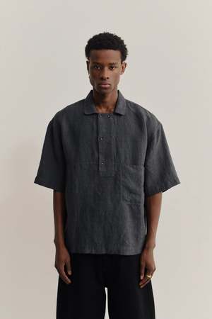The Taita Shirt has a boxy fit with short sleeves, a slip-on design, and a polo-inspired shirt collar. Woven in Ireland, this 100% linen fabric features a plain weave with a vintage-like texture. Pre-shrunk for stability, it combines a dry hand feel with a relaxed character.
