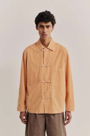 Oversized shirt with a front patch pocket and button fastening inspired by traditional Asian workwear. Made in Italy, this 100% cotton light corduroy features a soft texture and rich color nuances achieved through garment washing for a unique, vintage feel.