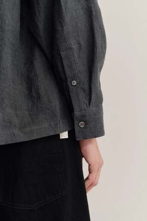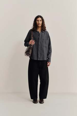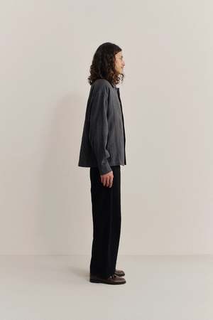 The Rumba Shirt features a wide, boxy fit with a spread collar, softly curved hem, one patch pocket, and a partially hidden button placket. Woven in Ireland, this 100% linen fabric features a plain weave with a vintage-like texture. Pre-shrunk for stability, it combines a dry hand feel with a relaxed character.
