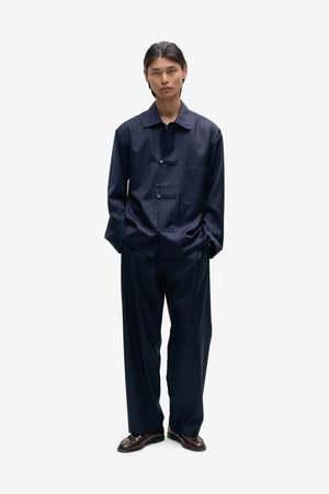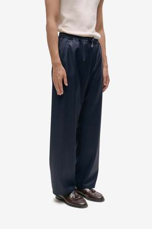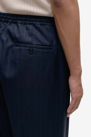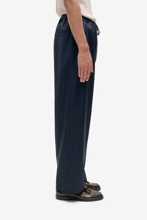 The Samurai Trousers by A Kind of Guise are crafted from 100% virgin wool in a navy double pinstripe. Made in Germany.