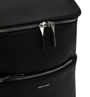 + COLOR : CAROTENE(Purity Line)-Silver Zipper BLACK (LOOM Line - Rose Gold Zipper Closure) Brick : Gold Zipper + Backpack with top zipper closure. + Adjustable webbings straps. + Side pockets and front zipper pocket. + Fits a 13" laptop. Interior: zipper pocket, smartphone pocket, logo2-embossed Dwell tag. + 100% recycled nylon lining. + Dimensions: 10" x 14" x 6.5" Adjustable Shoulder Straps: 17" - 35.5" Handle Drop: 3"
