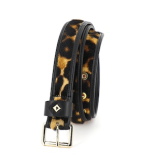 Leather print hide with contrast trim. Split lined cowhide leather. Gold hardware. Width: 30mm Size Guide (measured from buckle to center hole): X-Small - 29.5" | Small - 31.5" | Medium - 33.5" | Large - 35.5" FINAL SALE.