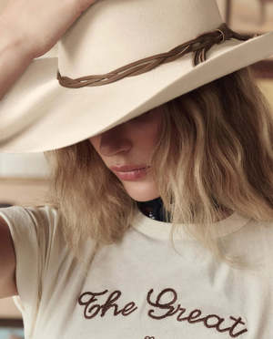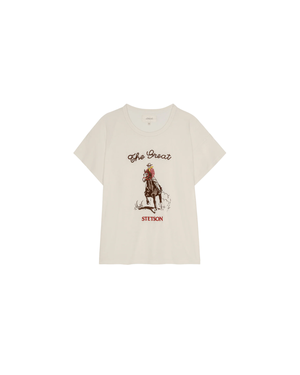 Inspired by a cherished vintage tee, the Boxy Crew is cut generously through the body with flattering updates like angled sleeves and a perfectly balanced length. Made in collaboration with Stetson, whose legacy of authentic craftsmanship has defined the spirit of the West since 1865, it features their signature graphic printed on soft jersey fabric with a slightly faded application and special embroidered accents that create a perfectly worn-in, vintage feel. Handcrafted locally in Los Angeles, each piece is unique, ensuring no two are alike. Born from a shared love of the heritage and craftsmanship of the West, the Stetson & THE GREAT. collaboration celebrates timeless pieces that are made to last for years to come. Care guide: 100% Cotton. Machine wash cold, tumble dry low. Made in the U.S.A. Style code: T209002STS.