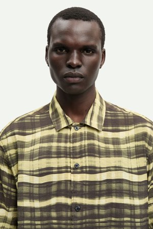 Short-sleeved woven shirt with a regular fit and button closure at the front. Neck yoke seam. Main material made from a viscose blend. 88% Viscose, 12% Polyamide Imported.