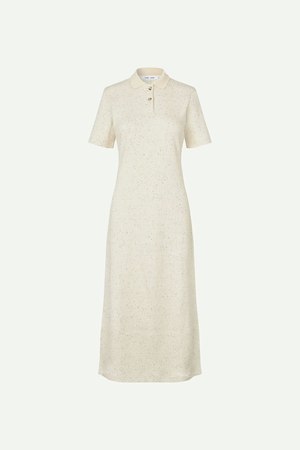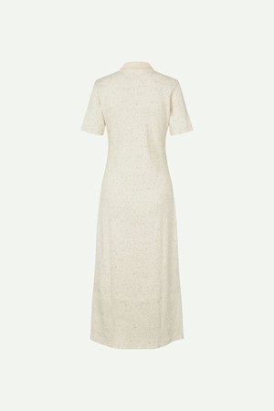 Short-sleeved, rib-knitted jersey polo dress with a regular fit and a midi-length skirt. Button closure at the front with a collared neckline and plain back. Main material is made from an elastic blend including organic cotton. 87% Organic Cotton, 8% Polyester, 5% Elastane. Imported.