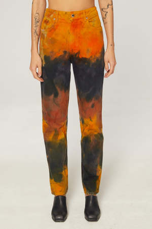By Eckhaus Latta The classic, high-waisted el jean features the novel wash "Venus." the atmospheric colorscape is achieved by employing an innovative dye technique where powder pigment is applied to melting ice. The jeans are distinguished with our trademark back patch pockets and has a zip fly closure with a logo2 shank on the waistband along with rivets on the front pockets in nickel hardware