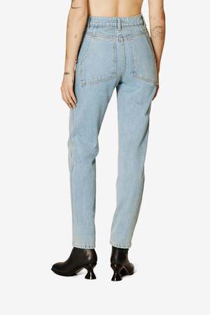 Tapered, high-waist El Jean in True Blue showcases one of the core denim washes. The jeans are distinguished with trademark back patch pockets and have a zip fly closure with a logo2 shank on the waistband along with rivets on the front pockets in nickel hardware.