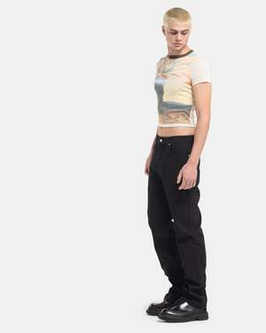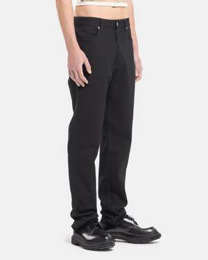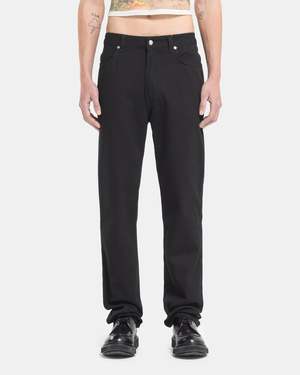 ECKHAUS LATTA Straight-Leg Jean in Almost Black The Straight-Leg Jean has an updated lower rise and a smooth almost black wash with classic jean fittings; belt loops, side pockets, and a button-fly. The pair additionally feature their signature curving back pocket design laid over a yoked construction. - 100% Cotton. - Made in the USA. - Machine wash cold inside out, tumble dry low. - 333 EL CORE AB. Natalie is 5'8 (173cm) and is wearing a size 26. McKinnon is 6'0 (183cm) and is wearing a size 30.