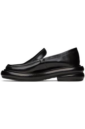 Patent leather loafers in black. - Square moc toe - Logo embossed at leather footbed - Buffed leather lining - Covered platform midsole - Rubber outsole - Platform: H1 in - Heel: H1.25 in Supplier color: Black