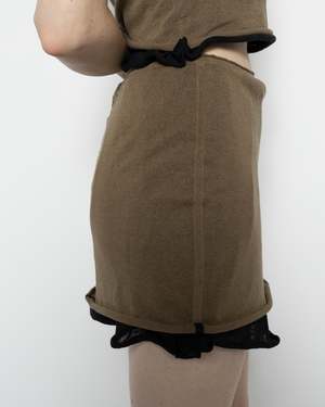 The Veil Skirt is a fully-fashioned, mid-rise mini skirt, knitted from a double-layer blend of tissue cotton and linen for an airy, lightweight feel. It features an elasticized waist and pointelle logo2 detail. - 44% Linen, 36% Cotton, 20% Nylon. - Made in China. - Dry clean only.