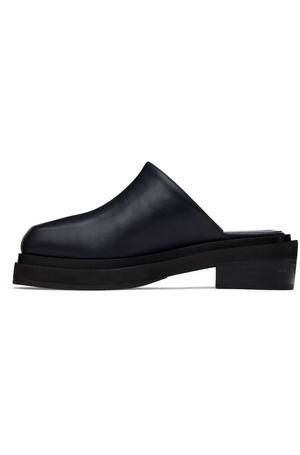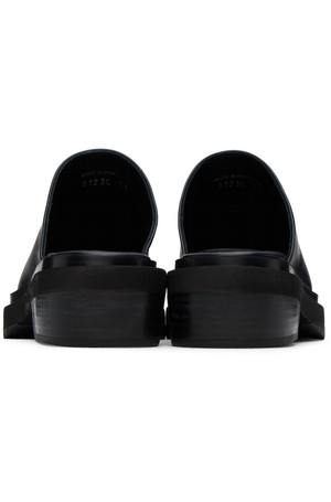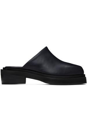 Buffed leather slip-on clogs in black. - Square toe - Logo-embossed padded leather footbed - Stacked leather block heel - Foam rubber midsole - Rubber outsole - Heel: H2 in Supplier color: Black