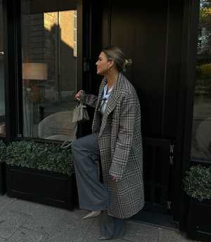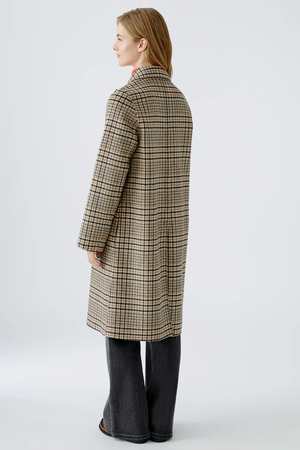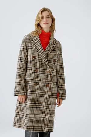 Embrace the Quiet Luxury trend with this high-quality material transformed into a coat with a classic double finish. This wool coat by Oui Fashion, crafted as a double-faced fabric, features sleeves with slits that can be folded to shorten their length. Wear it with both vibrant colors or neutrals for a tonal outfit. Details: - Straight classic fit. - High notched collar. - Double-breasted closure. - Generous side slit pockets with decorative flap. - Center back vent. - Length for size 36 (S): 106 cm. - Color: Light Stone Grey. - It is recommended to take your usual size. - Model is 175 cm tall and wears size 36 (S). - 65% wool, 33% polyester, 1% polyamide, 1% cotton. - Dry clean only.