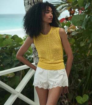 In a lightweight, slightly sheer viscose blend, the La Top is a fitted knit top detailed with a delicate allover pointelle design inspired by Victorian-era bobbin lace. Made with Lenzing ECOVERO, which comes from sustainably-managed forests and has lower water and emissions impacts than traditional viscose. Made in Turkey. 88% Lenzing Ecovero, 12% Polyamide. Hand wash cold. Do not bleach. Lay flat to dry or dry clean.