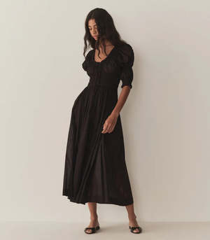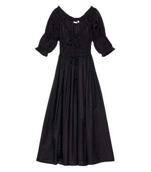 In a soft, lightweight blend of organic cotton and viscose, the best-selling Ischia Dress. Perfect for days in the sun at home or year-round travel. You will fall in love with this closet staple. Featuring double-puffed sleeves and a scoop neckline adorned with petite ruffles and a functional center tie for the perfect fit. 52% organic cotton, 48% viscose.