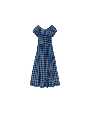 Crafted from midweight organic cotton voile woven with yarn-dyed Dorset Plaid, the Valenne Dress is an easy-going silhouette with sweet short sleeves and a full, ankle-grazing tiered skirt. It is fitted at the waist with 1950s-inspired darting, and the line of mother-of-pearl buttons down the center front can be worn fully closed or slightly undone. Care Guide Made in India. 100% organic cotton. Hand wash cold separately. Do not bleach. Hang to dry. Cool iron if needed.