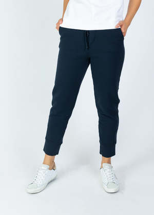 MJ. Watson's Classic Sweatpant features an elastic and drawstring waist with a tapered leg and rib knit ankle. Details: - Pull on. Elastic and drawstring rib knit waist. - Front hip pockets. Tapered leg with rib knit ankle. - Cold wash. Hang dry. Dry clean. - Made in Italy. Color navy. 100% cotton. Model is 5'9", weighs 128 pounds and wears a US size 6.