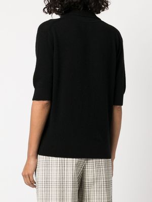 Women > Clothing > Topwear > Polo Shirts Black cashmere polo shirt with a knitted construction, plunging V-neck, spread collar, short sleeves, and a straight hem. Composition: 100% Cashmere