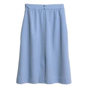 This vintage 70s A-Line midi skirt by ARA features a twill weave in a baby blue color. Made from a blend of 55% polyester and 45% virgin wool with an acetate lining. The skirt has a high rise, regular waistband, zip closure, single vent, and waist dart seams. Condition: Excellent vintage (no flaws) Tag: 40 Size: M Style: A-Line Length: Midi Rise: High Waistband: Regular Closure: Zip Vent: Single Seams: Waist Dart Measurements (cm): Waist: 31 Length: 68 Hip: 43 Hem: 64 SKU: 000142