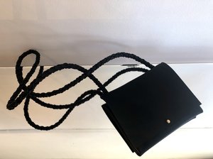 Perfect mini shoulder bag (or cross body!) from ARA. Available in black oiltan leather with shiny silver leather strap or solid black oiltan strap. Small interior patch pocket fits some cash or your credit card. 100% leather Handmade in Portland, Oregon